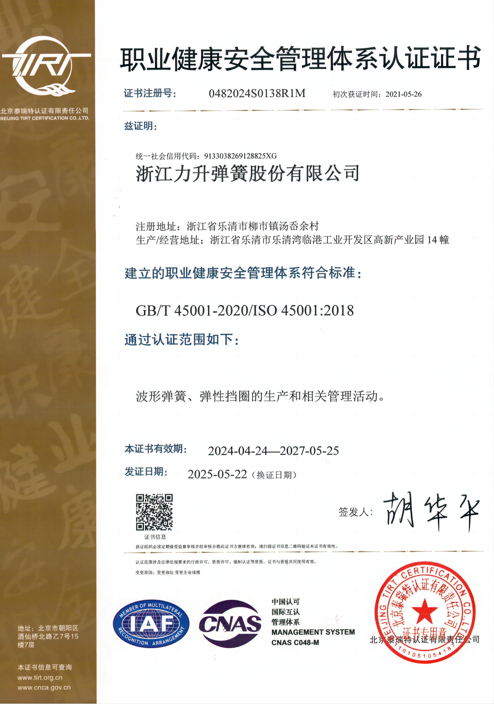 ISO45001職業健康安全管理體系